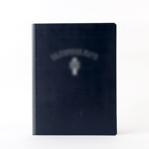 コメント:コーポレートカラー1色の希望色を使用でき、箔押しを足すことにより、より高級感を演出しています。また、上質の見返しも施しています。