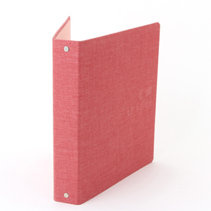 コメント:貼くるみ素材に布クロスを使用した4穴Oリングファイルです。空押しで、おしゃれな雰囲気にしています。