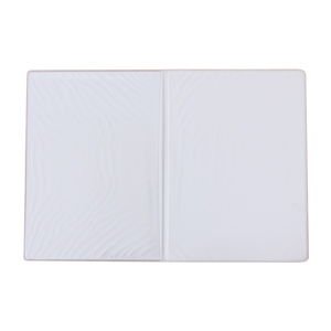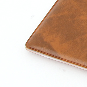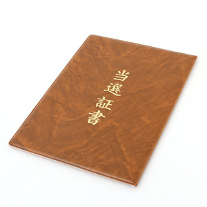 コメント:ビニール製の証書入れです。表材の選択と金の箔押しをすることにより高級感を出しています。