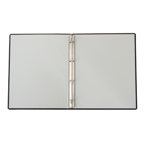 コメント:表材にビニールペーパーを使用した貼くるみの4穴Oリングファイルです。高級感のあるファイルです。てこ付きの金具を使用することにより、開閉を楽にしています。